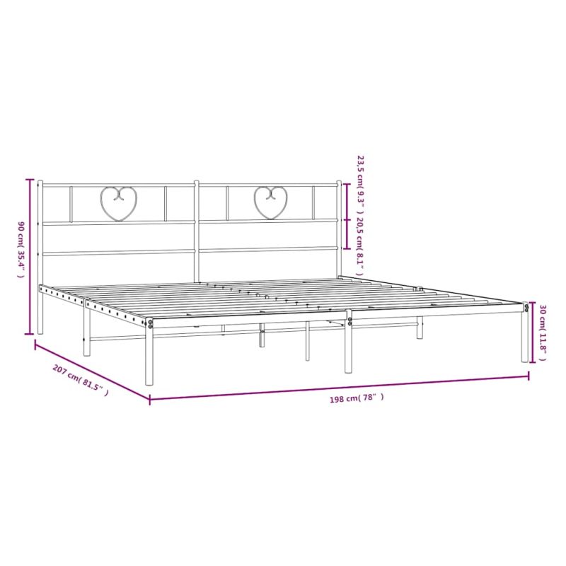 Метална рамка за легло с горна табла, черна, 193x203 см