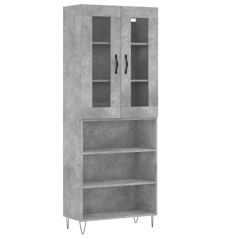 Висок шкаф, бетонно сив, 69,5x34x180 см, инженерно дърво