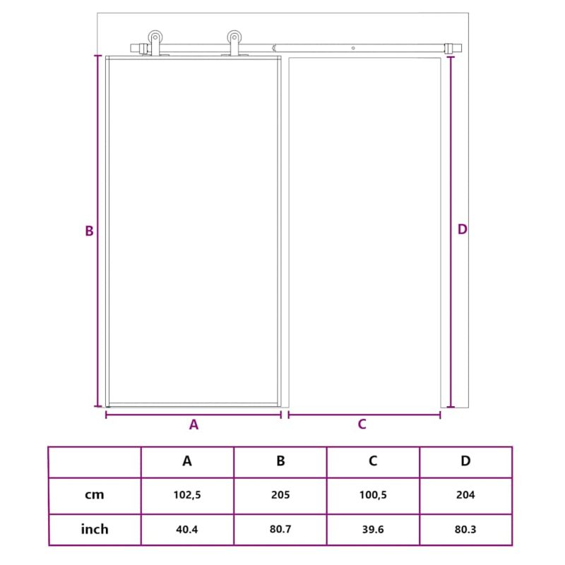 С тази плъзгаща се врата създавате елегантен преход от едно пространство към друго. Здрав материал: Благодарение на интелигентната структура закаленото стъкло е по-здраво и по-издръжливо от всяко друго стъкло. Закаленото стъкло е известно с това, че издържа на въздействие, като силни удари, драскотини, удари и др.Здрава метална рамка: Тази плъзгаща се врата има алуминиева рамка за издръжливост и стабилност.Безопасно и тихо плъзгане: Благодарение на ограничителя, вътрешната плъзгаща се врата може да се отваря и затваря тихо чрез буферен механизъм.Прозрачни стъклени панели: Тези прозрачни стъклени панели позволяват на светлината да преминава, което ги прави идеални за създаване на светла и отворена всекидневна зона.Тънък дизайн: Тънкият дизайн на рамката придава на плъзгащата се стъклена врата модерен и минималистичен вид. Добре е да се знае:Вратата може да се монтира само в комбинация с комплекти обков за плъзгащи се врати. Можете да намерите подходящите комплекти обков за плъзгащи се врати в нашия магазин.За начина на инсталиране можете да разгледате нашето ръководство за инсталиране на комплектите обков за врати и плъзгащи се врати.