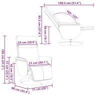 Облегнете се и се отпуснете в този изключително комфортен масажен наклоняем стол! Функция за вибрация: Представените 6 масажни точки ви позволяват да изпитате по-целенасочен масаж. Освен това включеното ръчно управление ви позволява да избирате различни програми за масаж. Функцията за масаж се захранва от USB конектор, който изисква сертифициран 5V USB захранващ източник (не е включен).Регулируема облегалка и опора за крака: Масажният стол е специално проектиран с функция за накланяне, така че да можете да регулирате облегалката и поставката за крака по вкуса си. Облегалката може да се накланя от 105 до 125 градуса.Завъртане на 360 градуса: Масажният стол може да се завърта свободно на 360 градуса, което му придава допълнителна гъвкавост.Удобно седене: Дебело подплатената седалка, облегалката и широките подлакътници, покрити с изкуствена кожа, осигуряват уютно и топло усещане, което ви кара да се чувствате като в прегръдка, докато седите. Изкуствената кожа е много издръжлив материал. Устойчива е на петна, което я прави лесна за почистване с влажна кърпа. Гладката повърхност също така придава луксозен вид и красотата на истинската кожа.Здрава и стабилна рамка: Рамката, изработена от шперплат и метал, осигурява здрава структура и стабилност. Този масажен накланящ се стол е удобен и издръжлив. Добре е да се знае:За да се спести място, някои части или възглавници са опаковани вътре в мебелите - проверете отделенията с цип или под покривалото на седалката за скрити компоненти.