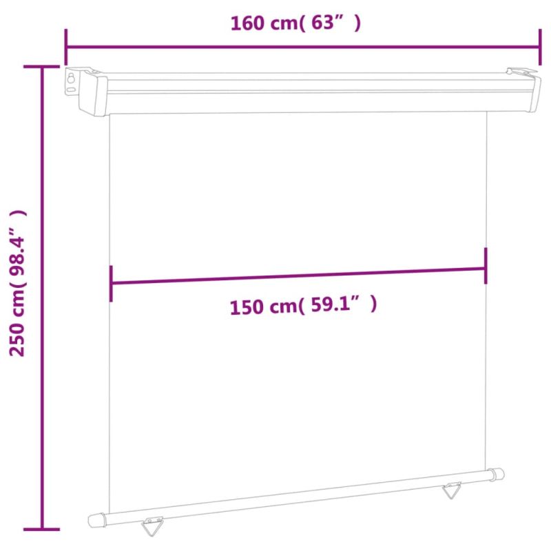 Тази семпла, но стилна странична тента осигурява уединение и създава уютно място. Освен това помага за защита срещу вятъра и ниско разположеното слънце. Параванът е изработен от устойчив на ултравиолетови лъчи полиестер. Алуминиевата ролка осигурява гладко плъзгане. Сенникът е снабден с функция за самозаключване, така че можете да го стопирате на всяко място. Дължината е регулируема до 250 см. Тентата може да се прибира автоматично в стоманената касета чрез просто издърпване на долните триъгълни халки. В допълнение, тази вертикална тента за балкон може да се фиксира както към стената, така и към тавана според специфичните ви нужди. Доставката включва и аксесоари за монтаж. Важно: Този продукт трябва да се монтира на здрава стена или таван, който може да се фиксира. GPSR