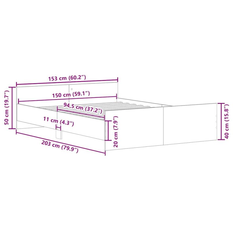 Рамка за легло с горна и долна табла, опушен дъб, 150x200 см