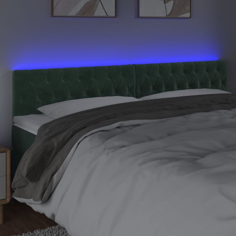 LED горна табла за легло, тъмнозелена, 200x7x78/88 см, кадифе