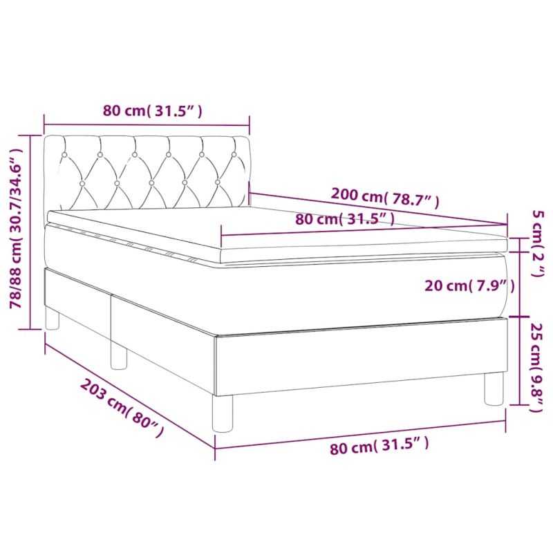 Използвайте това боксспринг легло, за да се насладите на спокоен сън! Предлага ви максимален релакс и приятен сън. Меко кадифе: Кадифето е мека и луксозна материя, която се отличава с гъста купчина равномерно отрязани влакна за гладка повърхност. Кадифената тъкан се отличава с меко усещане, което я прави приятна на допир.Практична табла за глава: Горната табла за легло се регулира на височина според вашите предпочитания. Горната част на леглото ви осигурява отлична опора за гърба, докато седите в леглото, за да четете или гледате телевизия.Покет пружинен матрак: Вградените индивидуални покет пружини са известни с много високото си качество, като същевременно осигуряват високо ниво на издръжливост и адаптивност. Те могат ефективно да абсорбират шума и ударите, причинени от мятане и въртене.Средно твърда поддръжка: Матракът за легло перфектно осигурява допълнителна стабилност и точното ниво на твърдост, без да се жертва комфорта. Така той е идеален за спящи по гръб или корем.Благоприятен за кожата топ матрак: Протекторът за матрак има издръжлива, както и щадяща кожата материя, което я прави мека и удобна. Забележка:От хигиенни съображения матракът не може да бъде върнат, ако опаковката е отстранена или отворена.Всеки продукт се доставя с ръководство за сглобяване в кашона за лесно сглобяване.