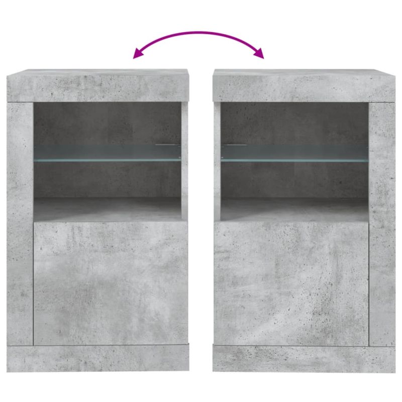 Странични шкафчета с LED, 2 бр, бетонно сиво, инженерно дърво