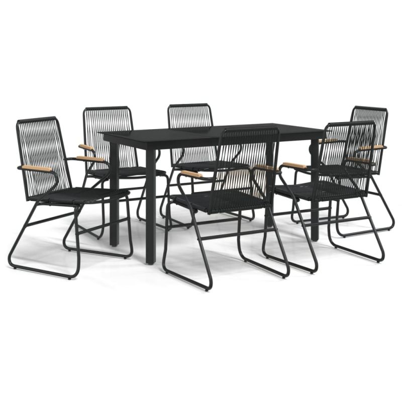 Градински трапезен комплект от 7 части, черно, PVC ратан