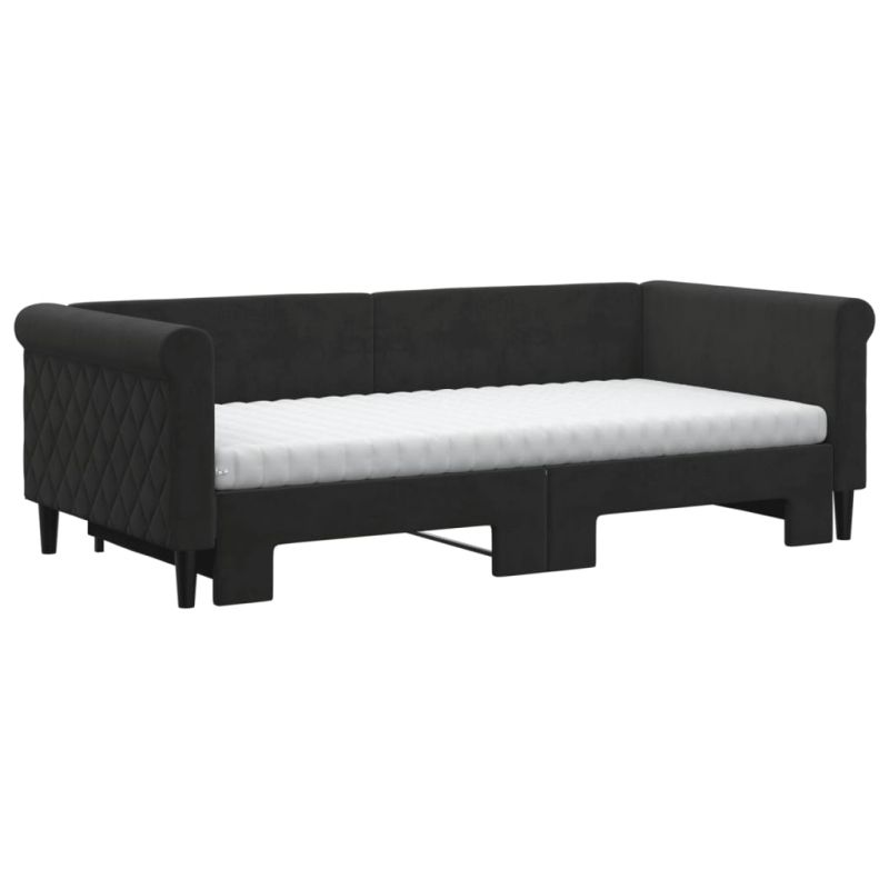 Канапе с изтеглящо легло и матраци черно 90x190 см кадифе
