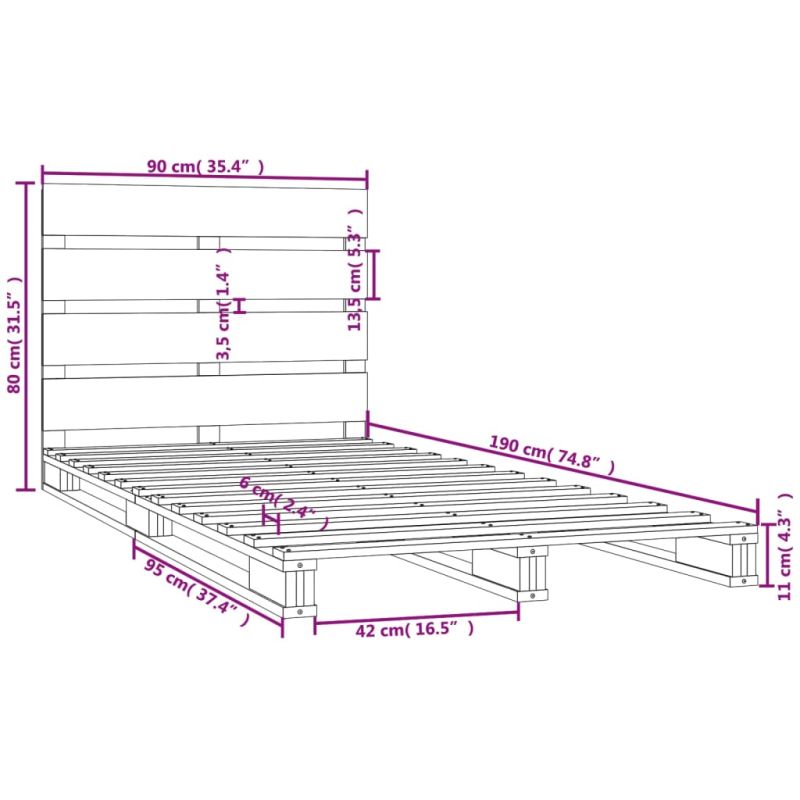 Насладете се на добър нощен сън с тази дървена рамка за легло! Тя ще бъде практично и декоративно допълнение към вашия интериор. Масивна борова дървесина: Масивната борова дървесина е красив естествен материал. Боровата дървесина е с продълговати шарки, а чеповете придават на материала характерния му рустик вид.Табла с ламели: Тази горна табла за легло с атрактивен дизайн на дървени ламели позволява на светлината да се движи по-свободно в стаята и придава модерен характер на всяка спалня.Практични ламели: Ламелите на тази дървена рамка за легло осигуряват добро разпределение на тежестта, като гарантират, че матракът остава на мястото си при всяко въртене и завъртане на тялото ви по време на сън. Забележка:Доставката включва само рамка за легло. Матракът не е включен. Можете да проверите в нашия магазин за подходящи матраци.Тази рамка за легло е подходяща за матрак с размери 90 x 190 см (3FT Single).