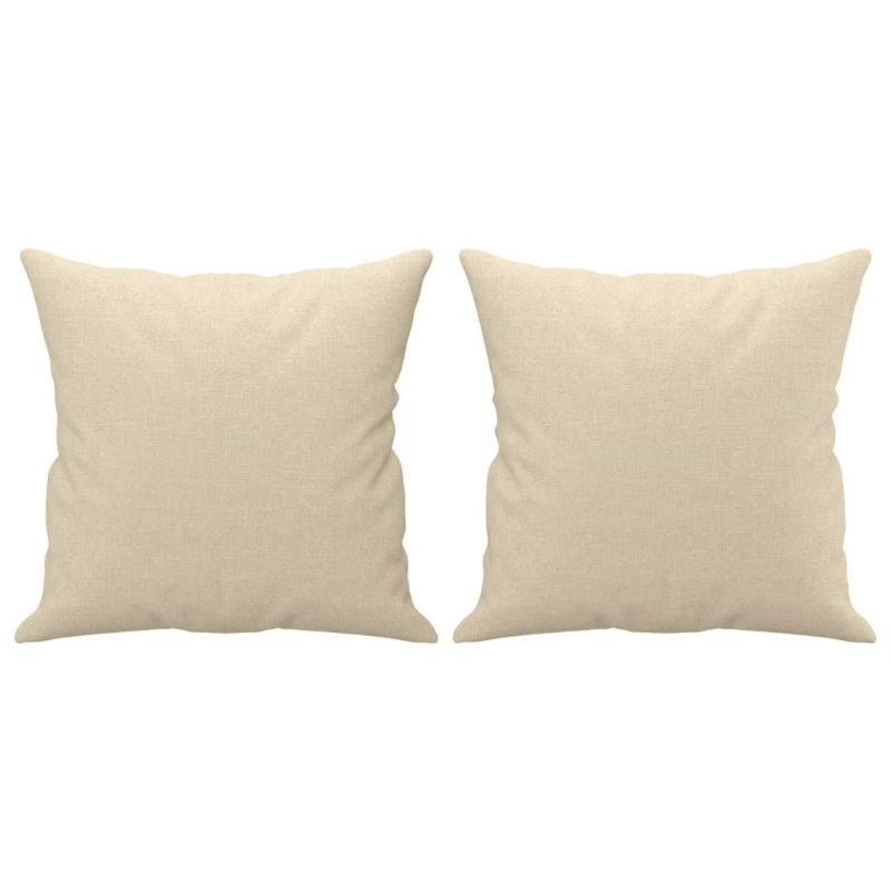 Комплект дивани 2 части с възглавници кремав плат текстил