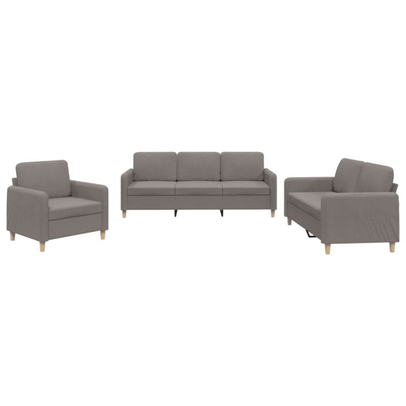 Комплект дивани от 3 части с възглавници, таупе, плат
