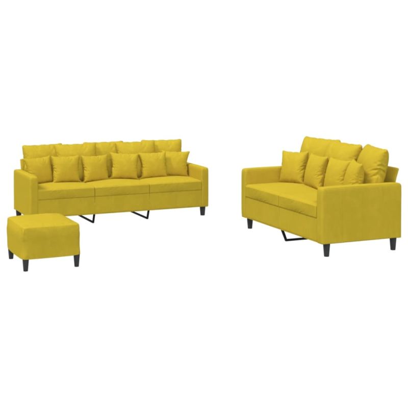 Комплект дивани от 3 части с възглавници, жълт, кадифе