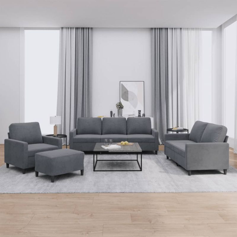 Комплект дивани от 4 части с възглавници, тъмносив, кадифе
