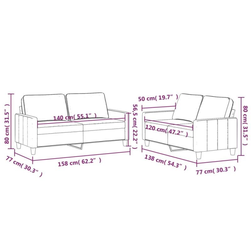 Този комплект дивани е отлично място за вашето време за разговори, четене, гледане на телевизия или просто почивка. Той е предназначен да бъде фокусна точка във вашия дом. Меко кадифе: Кадифето е мека и удобна материя, която се усеща приятно върху кожата.Здрава и стабилна рамка: Шперплатът и металната рамка на седалката на дивана осигуряват здравина и стабилност.Удобна седалка: Диванът е много удобен с дебело подплатената седалка и подлакътници. Максимално 110 кг на седалка. Съобразете се с риска от открит огън и други източници на силна топлина в близост до продукта.