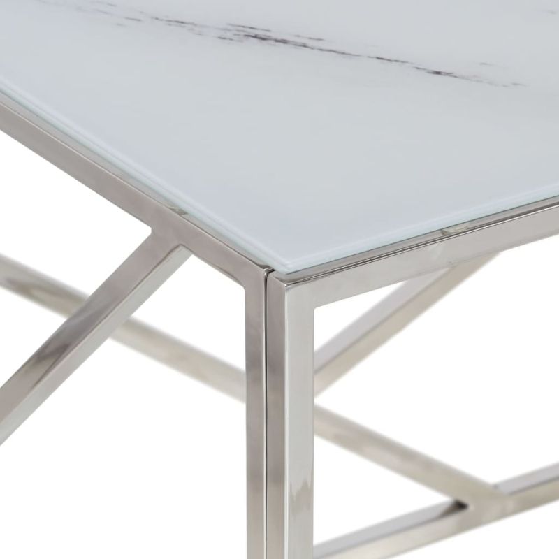 Начало Дом и градина Мебели Маси Акцентни маси Холни маси Кафе маса, сребриста, неръждаема стомана и закалено стъкло