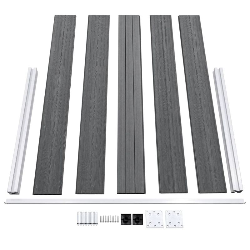 Нашият панелен комплект за ограда може да се използва като градинска бариера или жилищна ограда за неприкосновеност и сигурност. Тази WPC ограда има принт на дървесни шарки от едната страна и обикновен принт от другата страна, така че можете да изберете дизайна, който ви харесва повече. Нашият панел от дървонапълнен полимерен композит не изисква никаква допълнителна обработка, като лакиране или боядисване. Той е много издръжлив и устойчив на гниене или ръжда. Благодарение на алуминиевия горен профил, оградните панели могат да бъдат плътно прикрепени един към друг, което увеличава тяхната твърдост и здравина срещу удари. Проектирани като модулна система, оградните панели са лесни за инсталиране и ви позволяват да разширите оградата според желанието си. Тези стълбове разполагат с три слота, които правят възможно монтирането на оградата по различни начини, например в права линия (180 градуса), под прав ъгъл (90 градуса) или в "Т"-образна форма. Доставката включва 14 WPC дъски, 3 стълба и 2 алуминиеви шини. Този комплект ограда се сглобява лесно.