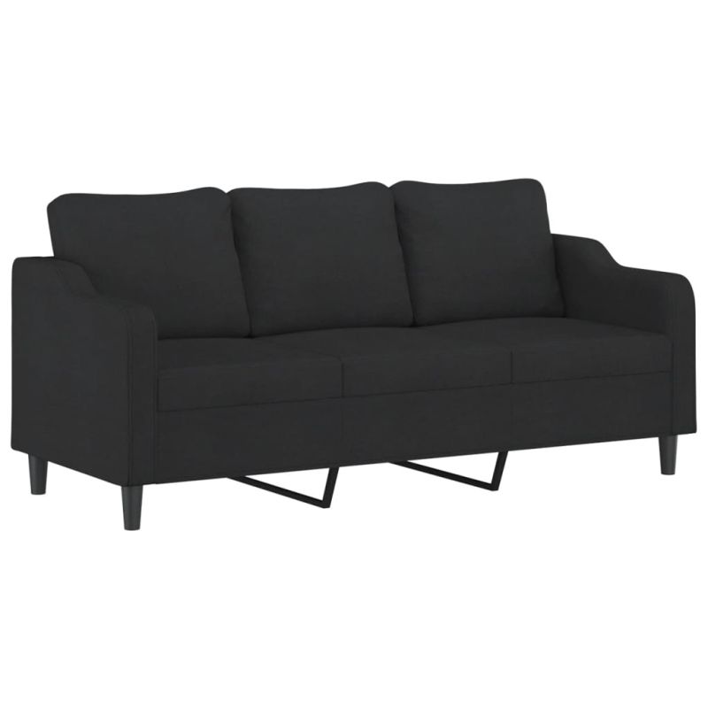 Комплект дивани 3 части с възглавници черен текстил