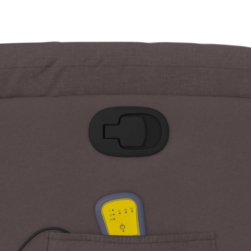 Облегнете се и се отпуснете в този изключително комфортен масажен наклоняем стол! Функция за ръчно накланяне: Този накланящ се стол има дръжка от дясната страна. Можете ръчно да настроите поставката за крака и облегалката до произволна позиция според вашето удобство с просто издърпване на дръжката. Тази функция позволява максимален наклон от 135 градуса. Освен това облегалката може бързо да се върне на първоначалното си място с лесно издърпване на дръжката.Функция за вибрация: Представените 6 масажни точки ви позволяват да изпитате по-целенасочен масаж. Освен това включеното ръчно управление ви позволява да избирате различни програми за масаж. Функцията за масаж се захранва от USB конектора, но сертифицираният 5V USB източник на захранване не е включен.Удобно седене: Дебело подплатената седалка, облегалката и широките подлакътници, покрити с текстил, осигуряват уютно и топло усещане, което ви кара да се чувствате като в прегръдка, докато седите. Тъканта се отличава със семпъл и изчистен вид и е дишаща и издръжлива.Удобен страничен джоб: Този фотьойл има страничен джоб за вашето дистанционно управление или за поддържане на вашите основни вещи леснодостъпни.Здрава и стабилна рамка: Рамката, изработена от дърво и метал, осигурява здрава структура и стабилност. Този накланящ се фотьойл е удобен и издръжлив. Максимално 110 кг на седалка.