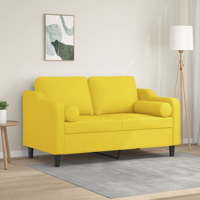 2-местен диван с декоративни възглавници светложълт 120 см плат
