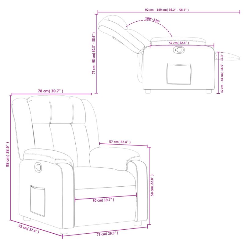 Облегнете се и се отпуснете в този изключително комфортен наклоняем стол! Функция за ръчно накланяне: Този накланящ се стол има дръжка от дясната страна. Можете ръчно да настроите поставката за крака и облегалката до произволна позиция според вашето удобство с просто издърпване на дръжката. Тази функция позволява максимален наклон от 135 градуса. Освен това облегалката може бързо да се върне на първоначалното си място с лесно издърпване на дръжката.Удобно седене: Дебело подплатената седалка, облегалката и широките подлакътници, покрити с текстил, осигуряват уютно и топло усещане, което ви кара да се чувствате като в прегръдка, докато седите. Тъканта се отличава със семпъл и изчистен вид и е дишаща и издръжлива.Удобен страничен джоб: Този фотьойл има страничен джоб, за да държите основните си вещи леснодостъпни.Здрава и стабилна рамка: Рамката, изработена от дърво и метал, осигурява здрава структура и стабилност. Този накланящ се фотьойл е удобен и издръжлив. Максимално 110 кг на седалка.