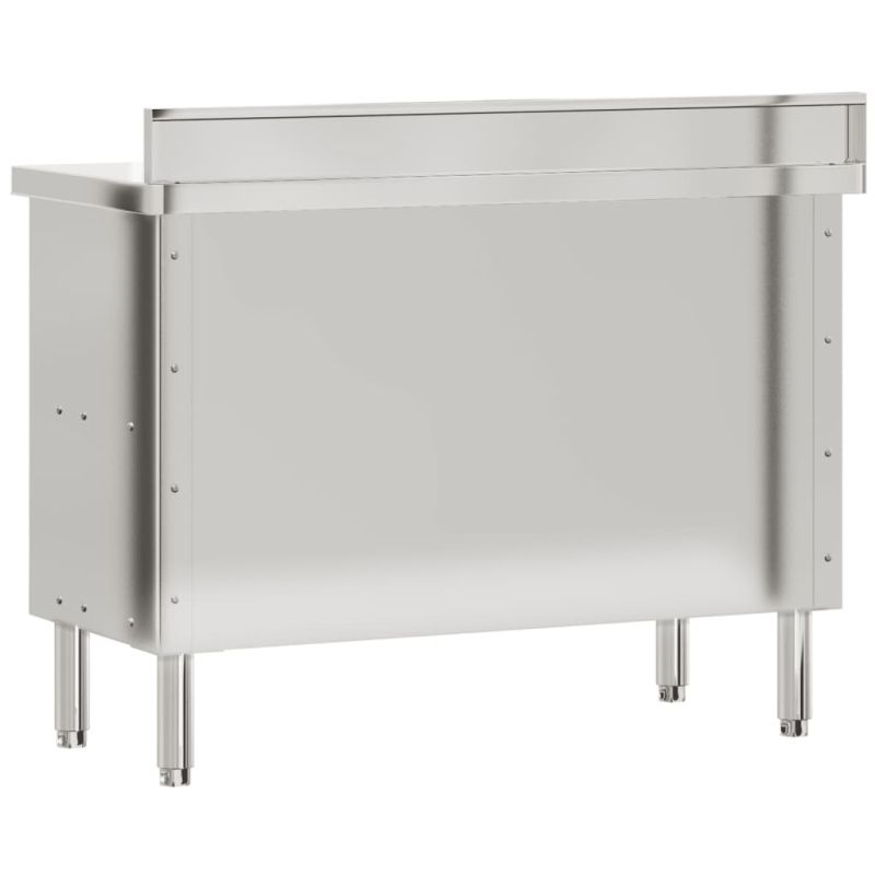 Тази универсална кухненска работна маса е идеална за приготвяне и съхранение на храна, което я прави идеално допълнение към всяка кухня, ресторант, училище или друга търговска среда. Издръжлива и стабилна конструкция: Работната маса е изработена от неръждаема стомана, осигуряваща устойчивост на корозия и ръжда за години на надеждна употреба. Гладката повърхност е лесна за почистване и поддръжка, осигурявайки хигиенична зона за приготвяне на храна.Достатъчно място за съхранение: Тази маса разполага с удобен долен рафт, който ви позволява да държите почистващи препарати, кухненски прибори и други инструменти леснодостъпни.Дизайн с плъзгаща се врата: Дизайнът с плъзгаща се врата на тази кухненска маса осигурява удобен достъп до съставките и консумативите.Регулируеми крачета: Регулируемите крачета с нехлъзгащ се дизайн гарантират, че масата от неръждаема стомана остава стабилна и ще остане неподвижна, предпазвайки пода от повреда. Внимание:За да предотвратите преобръщане, този продукт трябва да се използва с предоставеното устройство за закрепване на стена.