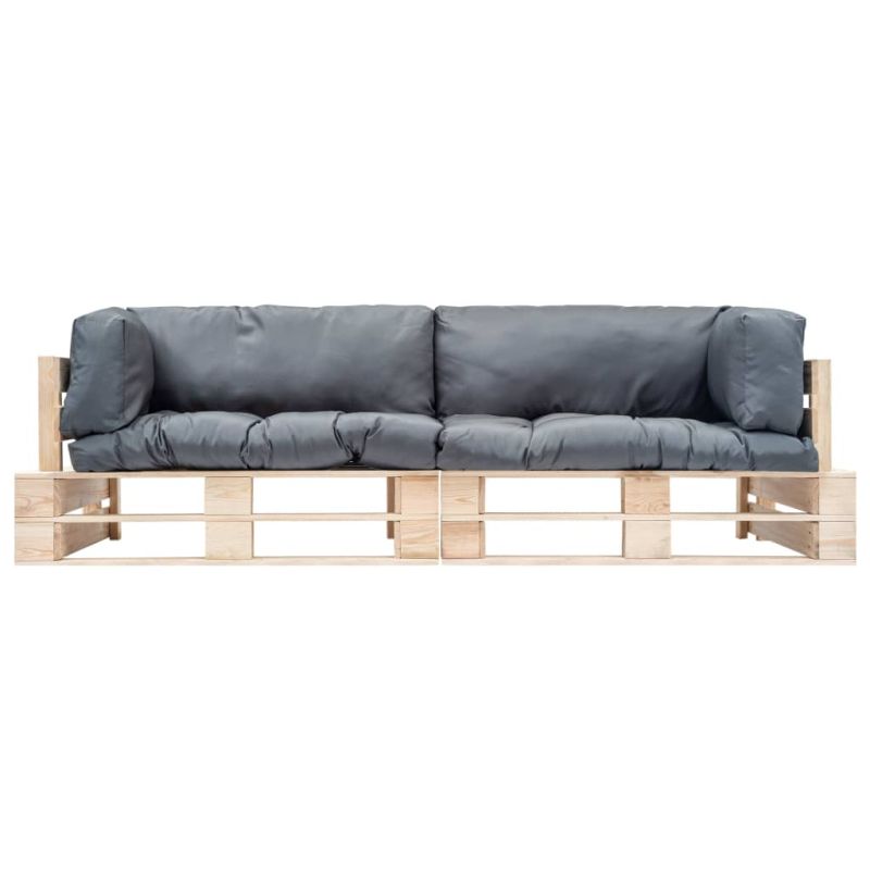 Нашият градински диван от палети ще бъде идеален избор за вас да се отпуснете и да се насладите на времето, да подремнете или да поговорите със семейството или приятелите си. С непреходен палетен дизайн дървеният лаундж комплект добавя нотка на рустик чар към вашия вътрешен двор, градина или всекидневна. Изработен от импрегнирана борова дървесина, външният лаундж комплект е издръжлив и устойчив на атмосферни влияния. Този комплект патио дивани се отличава със здрава конструкция и изисква малко поддръжка. Доставян с меки, дебело подплатени възглавници, нашият лаундж комплект мебели ще осигури максимален комфорт. Доставката включва два 2-местни дивана с подвижни възглавници за седалка и облегалка. Комплектът градински мебели се сглобява лесно. Моля, имайте предвид, че дървото е естествен материал и може да има несъвършенства.