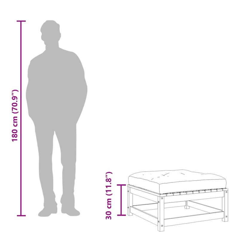 Тези дървени градински табуретки за крака с възглавници ще бъдат чудесно допълнение към вашата градина, тераса или вътрешен двор за разговори със семейството и приятелите или просто за наслаждаване на времето. Масивна борова дървесина: Масивната борова дървесина е красив естествен материал. Боровата дървесина е с продълговати шарки, а чеповете придават на материала характерния му рустик вид. Изработена от масивна борова дървесина, тази външна табуретка за крака е издръжлива и стабилна.Удобно изживяване на седалката: Дебело подплатените възглавници правят градинската табуретка по-удобна за сядане.Разнообразна употреба: Тази външна табуретка може да се използва не само за сядане или отпускане на краката ви, но може да се използва и като масичка за кафе, за да държите напитки, храна и други декорации.Дизайн с ламели: Конструкцията с ламели на градинската табуретка ефективно предотвратява събирането на вода, като гарантира, че седалката ще остане суха и няма да изгние.Модулен дизайн: Тази патио отоманка разполага с модулен дизайн, което я прави напълно гъвкава и лесна за преместване, за да отговаря на всяка обстановка. Можете да комбинирате различни модулни елементи, налични в падащото меню, за да създадете собствени конфигурации на градинска зона за отдих! Добре е да се знае:За да сте сигурни, че вашите външни мебели ще останат красиви, ви препоръчваме да ги защитите с водоустойчиво покривало.