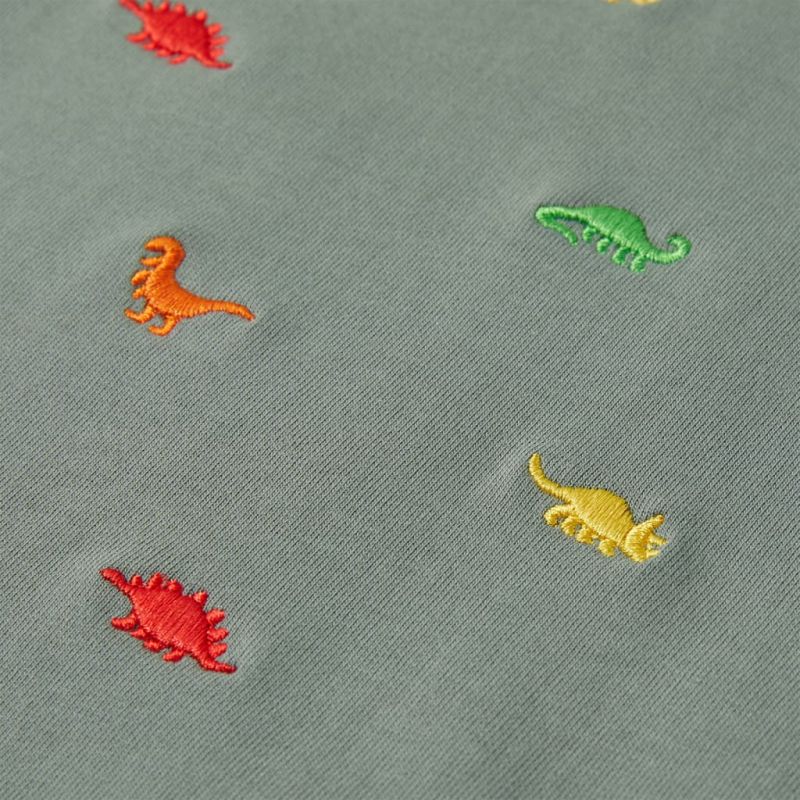 Нашата линия за детски дрехи е за достъпни, висококачествени и издръжливи ежедневни облекла за деца на възраст от 1,5 до 10 години. Нашата гама включва якета, пуловери, ризи и много други, с разнообразие от стилове, размери и цветове. Следвайки стандарта за високо качество на пазара, ние използваме висококачествени материали и усъвършенствани производствени техники. Този детски суитшърт е с дълги ръкави, кръгло деколте и оребрени кантове на маншетите, деколтето и долната част. Това горнище за деца е бродирано с различни видове динозаври навсякъде. Пуловерът е изработен от 100% пениран памук за мек и удобен на допир. Добре е да знаете: Таблицата с размери на снимката предоставя размери за деца на възраст от 1,5 до 10 години, като обхваща височината, гърдите, талията и ханша. Лесно можете да намерите подходящата за вашето дете.