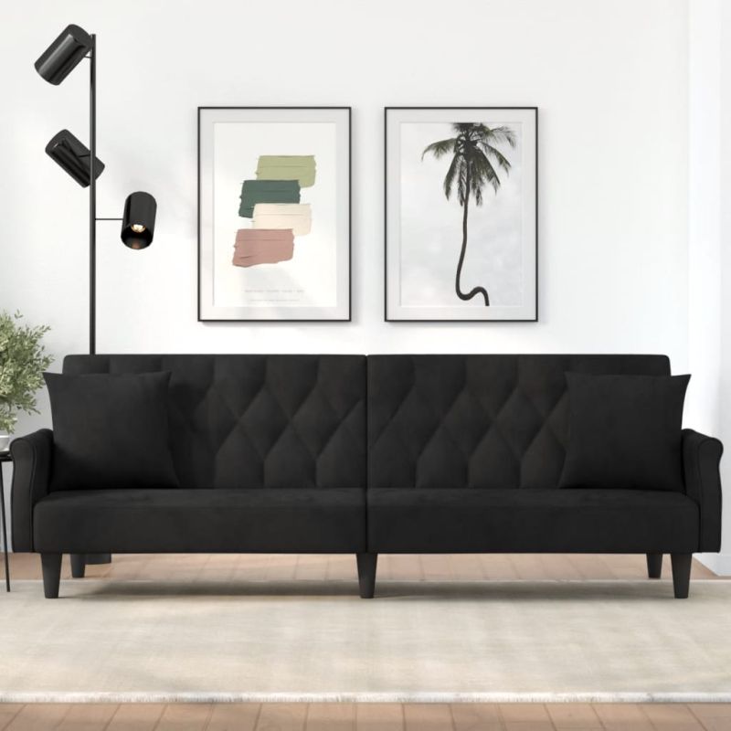Това разтегателно канапе е перфектно за гости с преспиване, като същевременно осигурява удобно място за сядане през деня. Меко кадифе: Кадифето е мека и луксозна материя, която се отличава с гъста купчина равномерно отрязани влакна за гладка повърхност. Тъканта от кадифе се отличава с подчертано меко усещане, което я прави приятна на допир. Регулируема облегалка: Можете да натиснете двете отделни облегалки на канапето частично или напълно надолу, за да създадете идеално място за дрямка или двойно легло. Удобна седалка: Разтегателният диван е много удобен с дебело подплатени седалки, подлакътници и облегалки.Практични възглавници: Тези възглавници не само украсяват декора ви, но могат да добавят допълнителен комфорт, когато седите или лежите. Здрава и стабилна рамка: Рамката от шперплат на дивана осигурява здравина и стабилност. Добре е да се знае:За да бъде сглобяването възможно най-лесно, всеки продукт се доставя с ръководство.