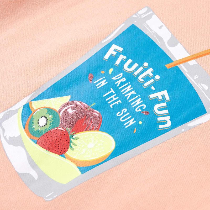 Нашата линия за детски дрехи е за достъпни, висококачествени и издръжливи ежедневни облекла за деца на възраст от 1,5 до 10 години. Нашата гама включва якета, пуловери, ризи и много други, с разнообразие от стилове, размери и цветове. Следвайки стандарта за високо качество на пазара, ние използваме висококачествени материали и усъвършенствани производствени техники. Тази детска тениска е с къс ръкав, обло деколте и прав модел. Тази тениска има щампа на чаша за пиене с различни плодове в долната част. Детската тениска с къс ръкав е изработена от 95% памук и 5% еластан за комфорт и дишане. Добре е да знаете: Таблицата с размери на снимката предоставя размери за деца на възраст от 1,5 до 10 години, покриващи височина, гърди, талия и ханш. Лесно можете да намерите подходящата за вашето дете.