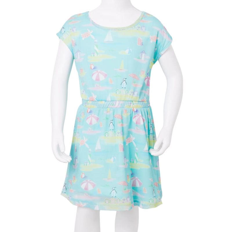 Нашата линия за детски дрехи е за достъпни, висококачествени и издръжливи ежедневни облекла за деца на възраст от 1,5 до 10 години. Нашата гама включва якета, пуловери, ризи и много други, с разнообразие от стилове, размери и цветове. Следвайки стандарта за високо качество на пазара, ние използваме висококачествени материали и усъвършенствани производствени техники. Тази детска рокля е с обло деколте, ръкави капаче и ластик на талията. Тази детска рокля има мрежест слой с принтове на плажни пейзажи. Детската къса рокля е изработена от мек материал, който включва полиестер, памук и еластан за комфорт и дишане. Добре е да знаете: Таблицата с размери на снимката предоставя размери за деца на възраст от 1,5 до 10 години, като обхваща височината, гърдите, талията и ханша. Лесно можете да намерите подходящата за вашето дете.