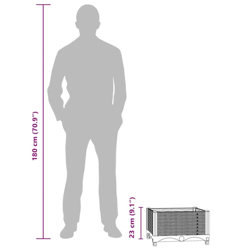 Тази повдигната леха ще бъде отлично решение за любители градинари, които искат да украсят своите градини, балкони или вътрешни дворове. Този плантер е изработен от полипропилен, което го прави здрав, износоустойчив и подходящ за ежедневна употреба на открито. Градинската леха е достатъчно дълбока и широка, за да побере голямо количество пръст и осигурява достатъчно място за вашите растения, зеленчуци, билки и цветя. Създайте прекрасен фон за вашите растения с тази елегантна леха за засаждане!