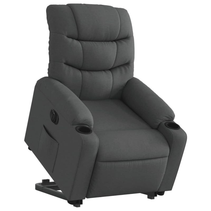 Електрически изправящ реклайнер стол, тъмносив, текстил