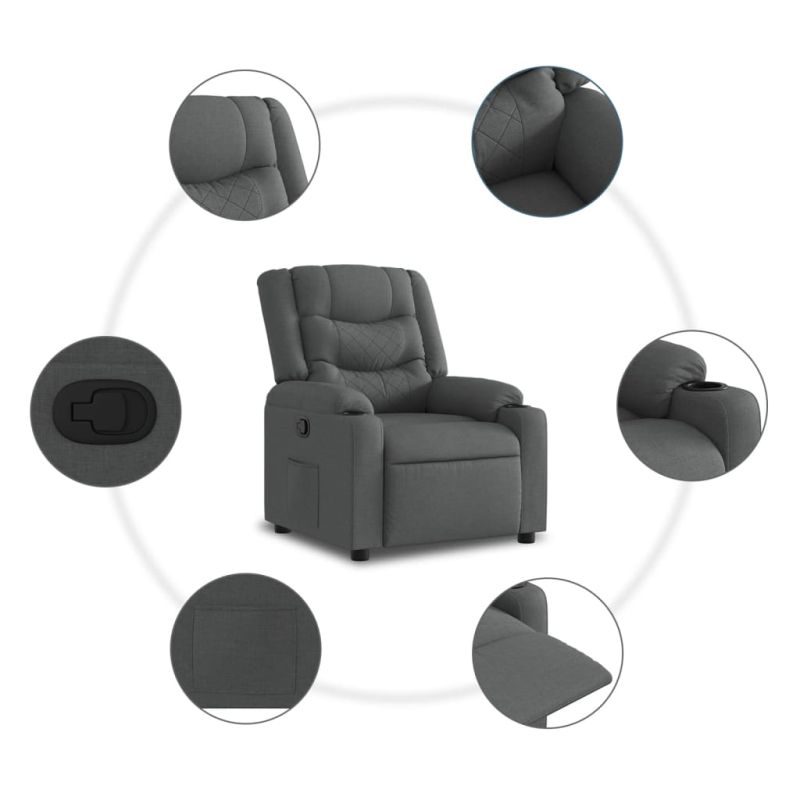 Облегнете се и се отпуснете в този изключително комфортен изправящ наклоняем стол! Функция за повдигане: Този стол реклайнер е оборудван с електрически двигател с функция за повдигане. Благодарение на функцията, която избутва целия стол нагоре, можете лесно да стоите, без да натоварвате гърба и коленете си с просто натискане на бутона.Функция за ръчно накланяне: Този накланящ се стол има дръжка от дясната страна. Можете ръчно да настроите поставката за крака и облегалката до произволна позиция според вашето удобство с просто издърпване на дръжката. Тази функция позволява максимален наклон от 135 градуса. Освен това облегалката може бързо да се върне на първоначалното си място с лесно издърпване на дръжката.Удобно седене: Дебело подплатената седалка, облегалка и широки подлакътници, покрити с текстил, осигуряват уютно и топло усещане, което ви кара да се чувствате като в прегръдка, докато седите. Тъканта се отличава със семпъл и изчистен вид и е дишаща и издръжлива.Удобен страничен джоб: Този фотьойл има страничен джоб, за да държите основните си вещи леснодостъпни.Здрава и стабилна рамка: Рамката, изработена от дърво и метал, осигурява здрава структура и стабилност. Този накланящ се фотьойл е удобен и издръжлив. Съобразете се с риска от открит огън и други източници на силна топлина в близост до продукта. Максимално 110 кг на седалка. Този уред може да се използва от деца на възраст от 8 години нагоре и от лица с намалени физически, сетивни или умствени способности или с липса на опит и познания, ако са получили надзор или инструкции относно използването на уреда по безопасен начин и разбират свързаните с това опасности. Децата не трябва да си играят с уреда. Децата не трябва да почистват и да извършват потребителска поддръжка без надзор.