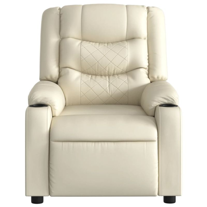 Облегнете се и се отпуснете в този изключително комфортен наклоняем стол! Функция за ръчно накланяне: Този накланящ се стол има дръжка от дясната страна. Можете ръчно да настроите поставката за крака и облегалката до произволна позиция според вашето удобство с просто издърпване на дръжката. Тази функция позволява максимален наклон от 135 градуса. Освен това облегалката може бързо да се върне на първоначалното си място с лесно издърпване на дръжката.Удобно седене: Дебело подплатената седалка, облегалката и широките подлакътници, покрити с изкуствена кожа, осигуряват уютно усещане, което ви кара да се чувствате като в прегръдка, докато седите. Изкуствената кожа е много издръжлив материал. Устойчива е на петна, което я прави лесна за почистване с влажна кърпа. Гладката повърхност също така придава луксозен вид и красотата на естествената кожа.Удобни поставки за чаши и страничен джоб: Този фотьойл разполага с две удобни поставки за чаши за вашите напитки и страничен джоб, за да държите основните си вещи леснодостъпни.Здрава и стабилна рамка: Рамката, изработена от дърво и метал, осигурява здрава структура и стабилност. Този накланящ се фотьойл е удобен и издръжлив. Максимално 110 кг на седалка. Съобразете се с риска от открит огън и други източници на силна топлина в близост до продукта.