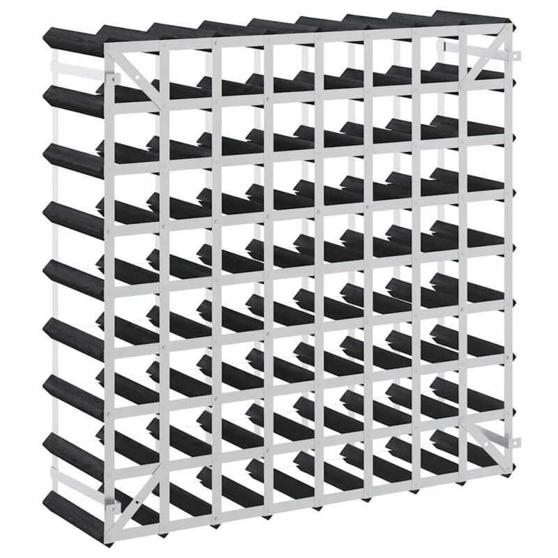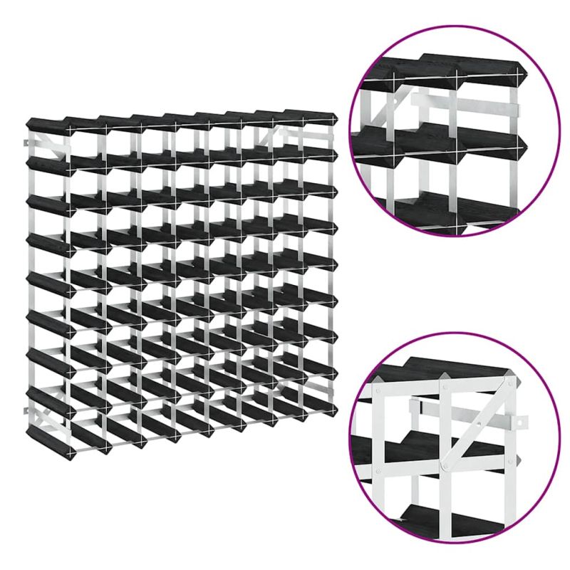 Стойка за вино за 72 бутилки, черна, масивна борова дървесина