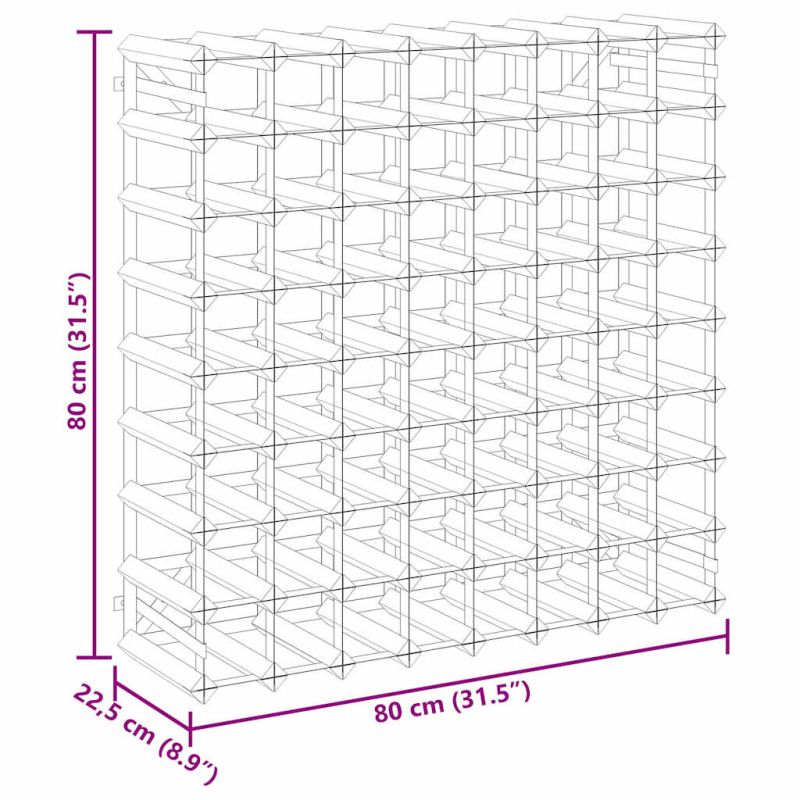 Тази дървена стойка за вино е идеална за съхранение и показване на вашето вино, което я прави чудесно допълнение към настоящия ви домашен декор. Този шкаф за вино побира до 72 бутилки вино. Неговият семпъл и елегантен дизайн придава усещане за рустик чар на вашето жилищно пространство. Освен това той ще бъде страхотен подарък за вашите приятели, които са любители и познавачи на виното. В допълнение, изработен от поцинкована стомана и масивна борова дървесина, този стелаж за вино е изключително стабилен и издръжлив. Моля, обърнете внимание: Бутилките с вино не са включени в доставката.