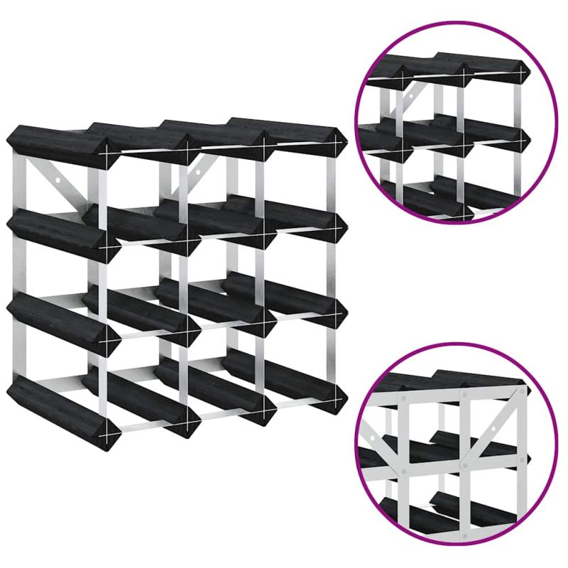 Стойка за вино за 12 бутилки, черна, масивна борова дървесина