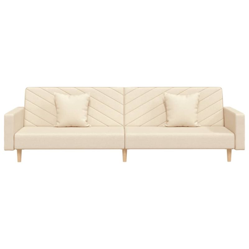 2-местно разтегателно канапе с две възглавници кремаво текстил