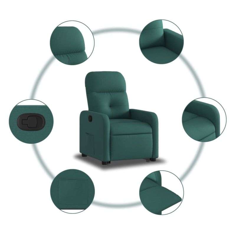 Изправящ реклайнер стол, тъмнозелен, текстил
