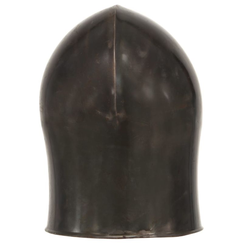 Този античен военен шлем е чудесен за ЛАРП (ролева игра на живо), косплей, партита на историческа тема, Хелоуин парти, театрални реквизити и исторически възстановки. Военният шлем е точна реплика на оригинален средновековен барбут шлем. Изработен от стомана с дебелина 18 gauge, той съчетава античен стил и здрав материал в привличащ вниманието шлем, който идеално ще пасне на вашия рицарски тоалет. Този шлем е с отворен дизайн в Т-образна форма, разкриващ само очите, носа и устата. При това е с атрактивен дизайн.
