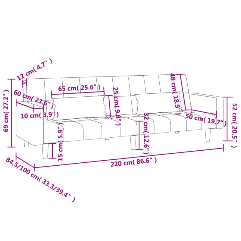 2-местно разтегателно канапе с две възглавници, таупе, текстил