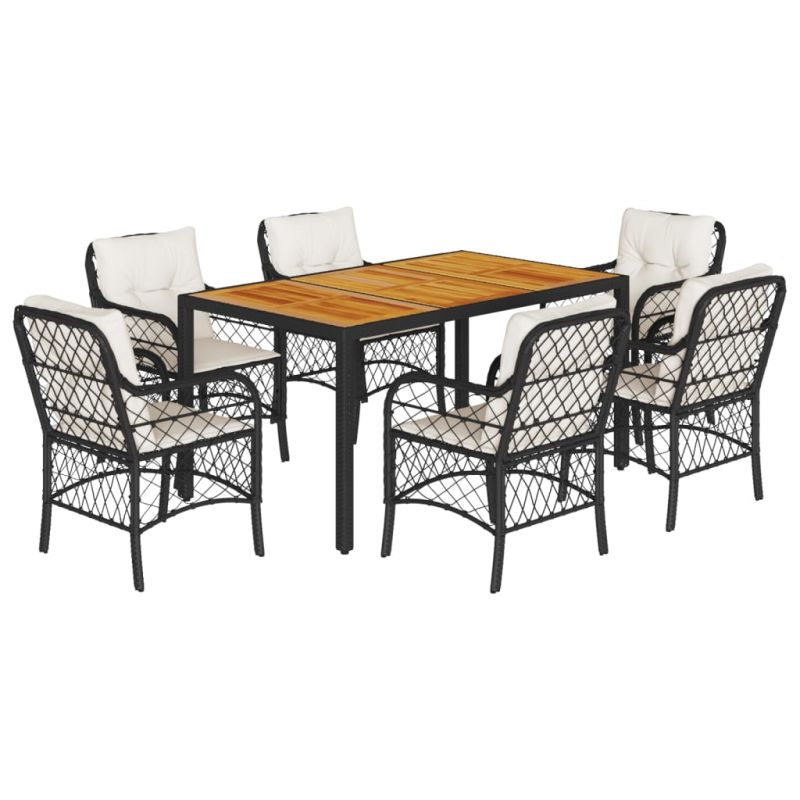 Градински трапезен комплект 7 части възглавници черен полиратан