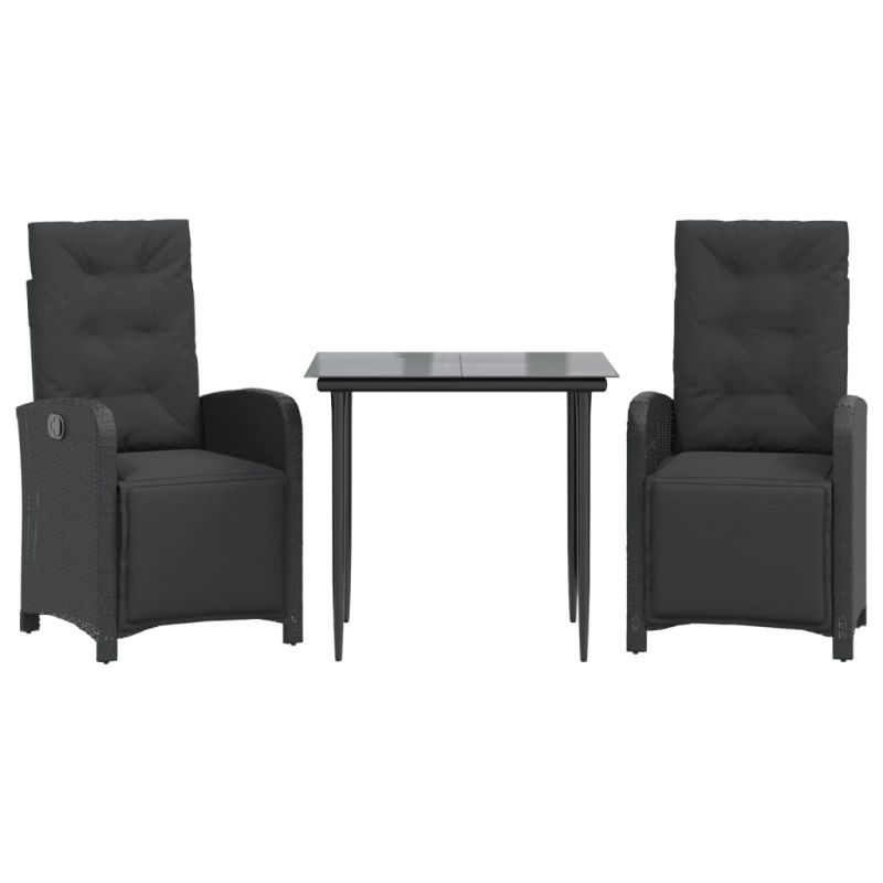 Бистро комплект с възглавници 3 части черен полиратан