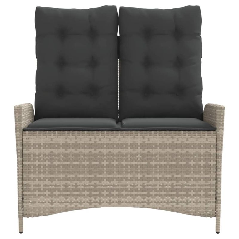 Накланяща се градинска пейка с възглавници светлосив полиратан