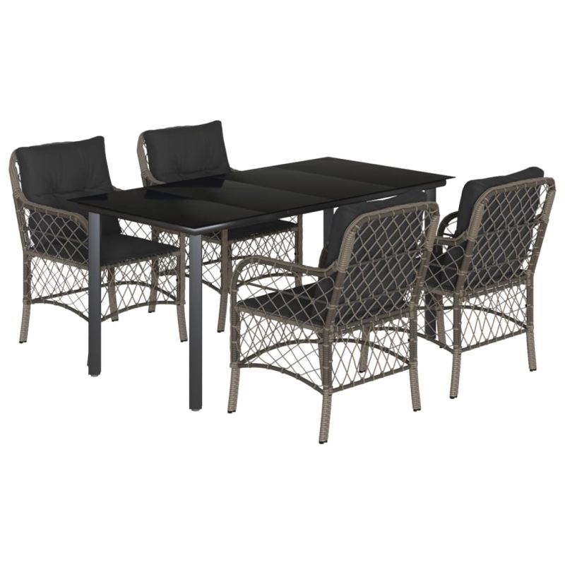 Градински трапезен комплект 5 части с възглавници сив полиратан