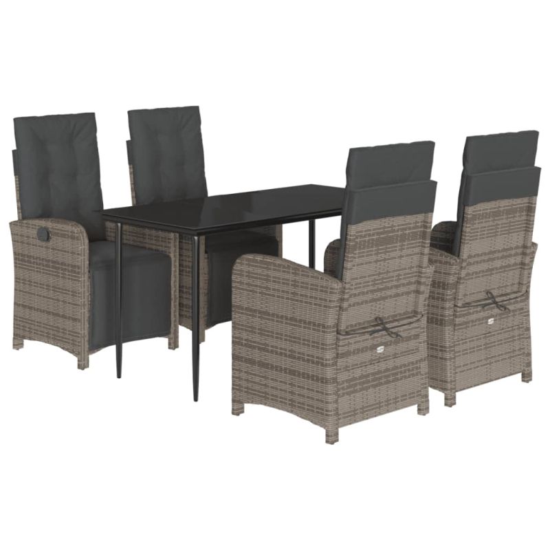 Градински трапезен комплект 5 части с възглавници сив полиратан