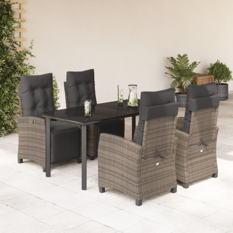 Градински трапезен комплект 5 части с възглавници сив полиратан