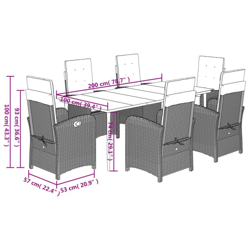 Този градински трапезен комплект е чудесен избор за вечеря на открито или просто за почивка в градината, задния двор или във вътрешния двор. Издръжлив материал: PE ратан, известен също като полиратан, е здрав синтетичен материал с малко необходима поддръжка, който прилича на естествен ратан. Той е лек, лесен за почистване и често се използва за външни мебели поради своята издръжливост и устойчивост на атмосферни влияния.Регулируема облегалка: Този градински стол има дръжка. Можете да регулирате облегалката във всяка позиция чрез издърпване на дръжката и бързо да я върнете в първоначалната ѝ позиция.Удобна седалка: Тази мебел за открито, снабдена с плътно подплатени възглавници, предлага удобство при сядане.Калъф, който може да се сваля и може да се пере: Тези възглавници за седалки имат подвижни калъфи за лесно пране и поддръжка. Възглавниците за облегалките имат калъф отзад за лесно закрепване към облегалките.Стъклен плот: Плотът на външната маса е изработен от здраво и издръжливо закалено стъкло, което улеснява почистването с влажна кърпа и добавя нотка елегантност към вашето външно пространство. Добре е да се знае:За да сте сигурни, че вашите външни мебели ще останат красиви, ви препоръчваме да ги защитите с водоустойчиво покривало.