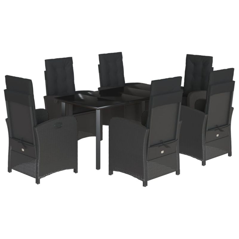 Градински трапезен комплект 7 части възглавници черен полиратан