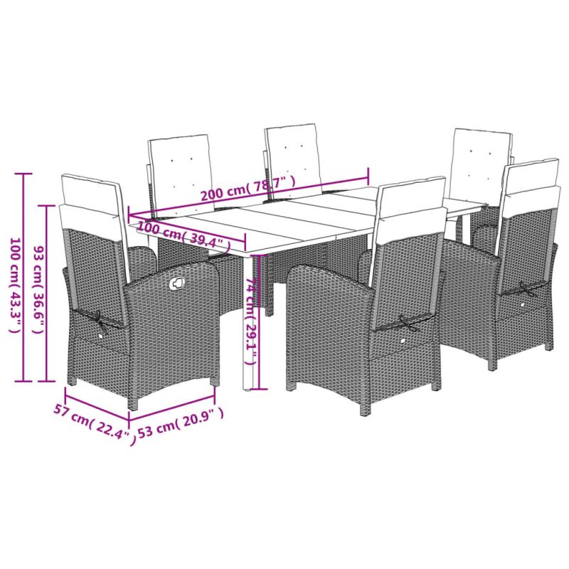 Този градински трапезен комплект е чудесен избор за вечеря на открито или просто за почивка в градината, задния двор или във вътрешния двор. Издръжлив материал: PE ратан, известен също като полиратан, е здрав синтетичен материал с малко необходима поддръжка, който прилича на естествен ратан. Той е лек, лесен за почистване и често се използва за външни мебели поради своята издръжливост и устойчивост на атмосферни влияния.Регулируема облегалка: Този градински стол има дръжка. Можете да регулирате облегалката във всяка позиция чрез издърпване на дръжката и бързо да я върнете в първоначалната ѝ позиция.Удобна седалка: Тази мебел за открито, снабдена с плътно подплатени възглавници, предлага удобство при сядане.Калъф, който може да се сваля и може да се пере: Тези възглавници за седалки имат подвижни калъфи за лесно пране и поддръжка. Възглавниците за облегалките имат калъф отзад за лесно закрепване към облегалките.Стъклен плот: Плотът на външната маса е изработен от здраво и издръжливо закалено стъкло, което улеснява почистването с влажна кърпа и добавя нотка елегантност към вашето външно пространство. Добре е да се знае:За да сте сигурни, че вашите външни мебели ще останат красиви, ви препоръчваме да ги защитите с водоустойчиво покривало.